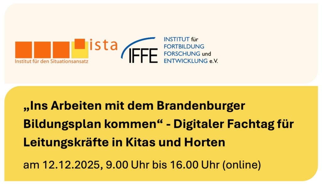 Im Dialog mit den anderen Teilnehmenden befassen Sie sich mit Impulsen aus dem Bildungsplan, zum Beispiel zur Weiterentwicklung von Konzeptionen, zu Partizipations- und Beschwerdeverfahren, Gewaltschutzkonzepten, zur inklusiven Zusammenarbeit mit Familien und im Sozialraum, zum Umgang mit Fehlverhalten im Team oder dazu, wie Sie Themen und Perspektiven der Kinder – auch für die Qualitätsentwicklung Ihrer Einrichtung – aufgreifen können.